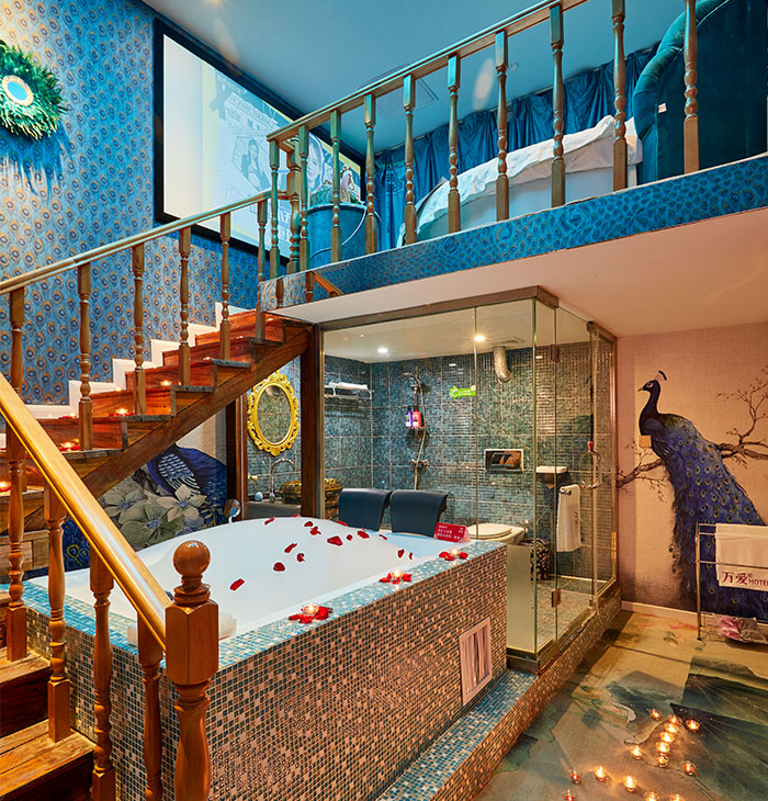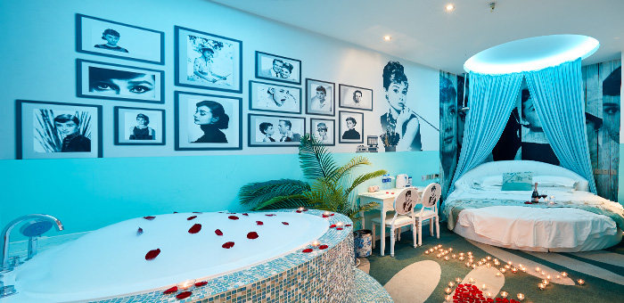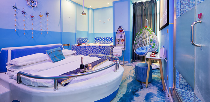 創(chuàng)意主題房 浪漫水床房 世外桃源房 初戀大床房 熱戀圓床房,浪漫不重樣,以極具創(chuàng)意的裝修風(fēng)格帶給您全新的體驗(yàn)。
